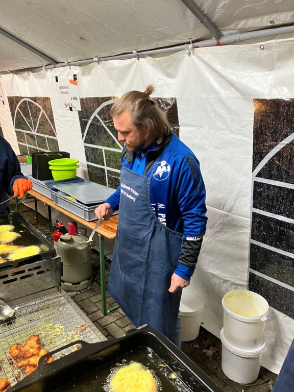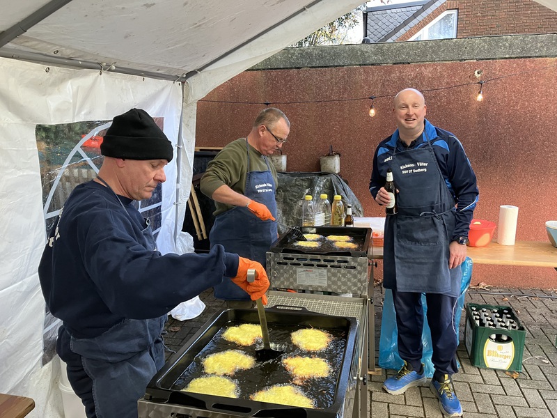 Doch wie konnten wir uns einbringen? Die Antwort lag schnell auf der Hand – und in unserer Tradition: unsere weithin beliebten Reibekuchen, die schon so manchen Dorffestbesucher begeistert haben. Gesagt, getan!