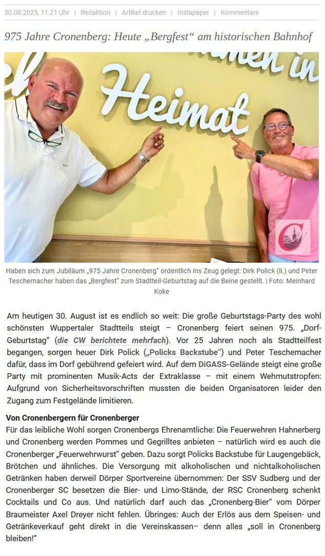 30. August - 975 Jahre Cronenberg - Die Kickenden Väter engagieren sich!